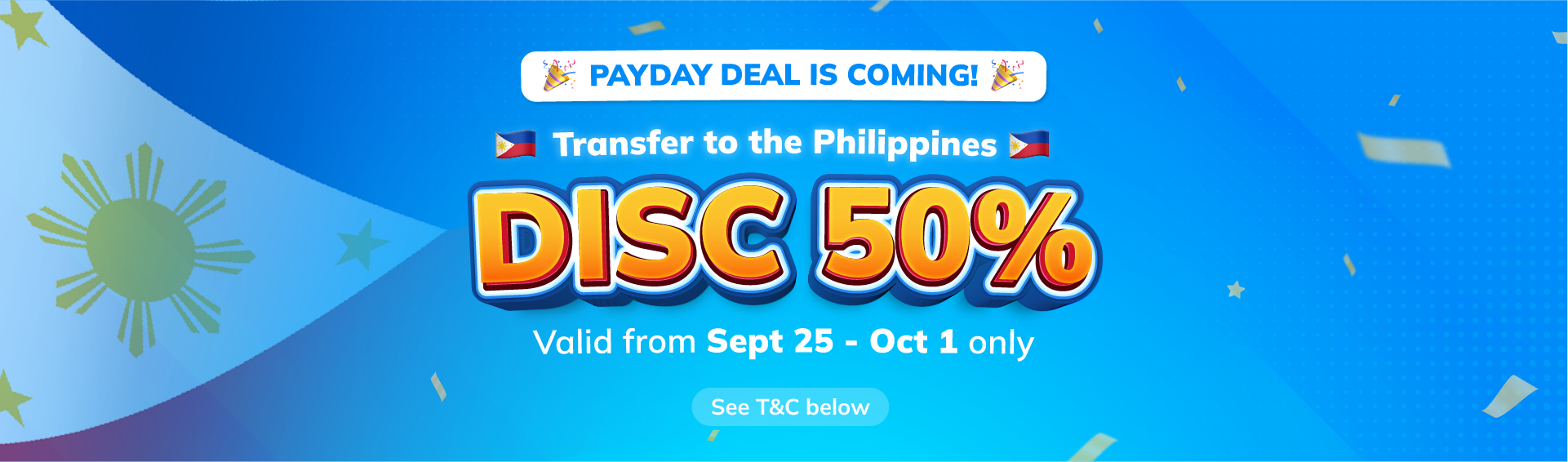 Special on Payday: 50% OFF for Transfers to the Philippines