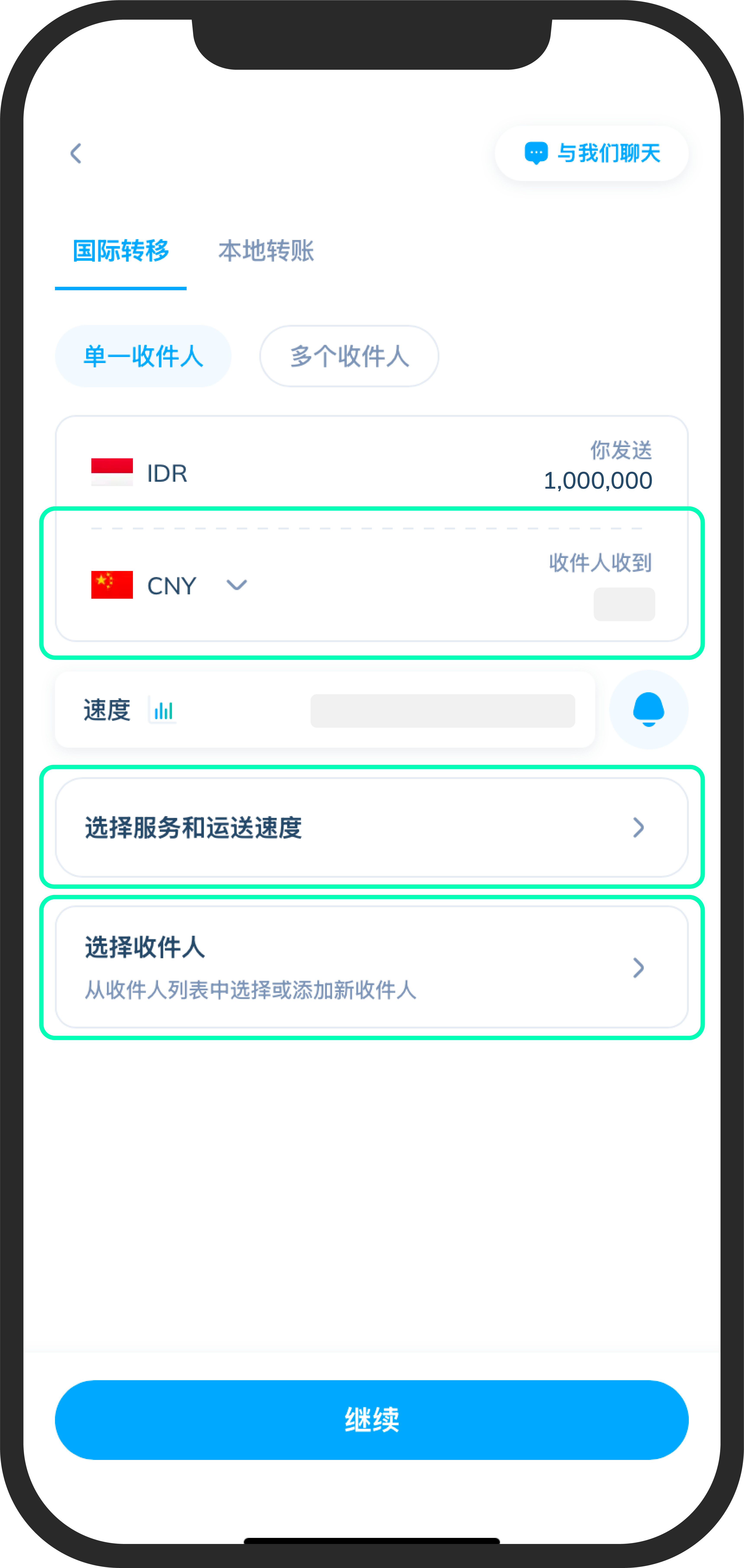 您可以以印尼盾(IDR)填写汇款金额,收款人将以目的地国家的货币收到款项