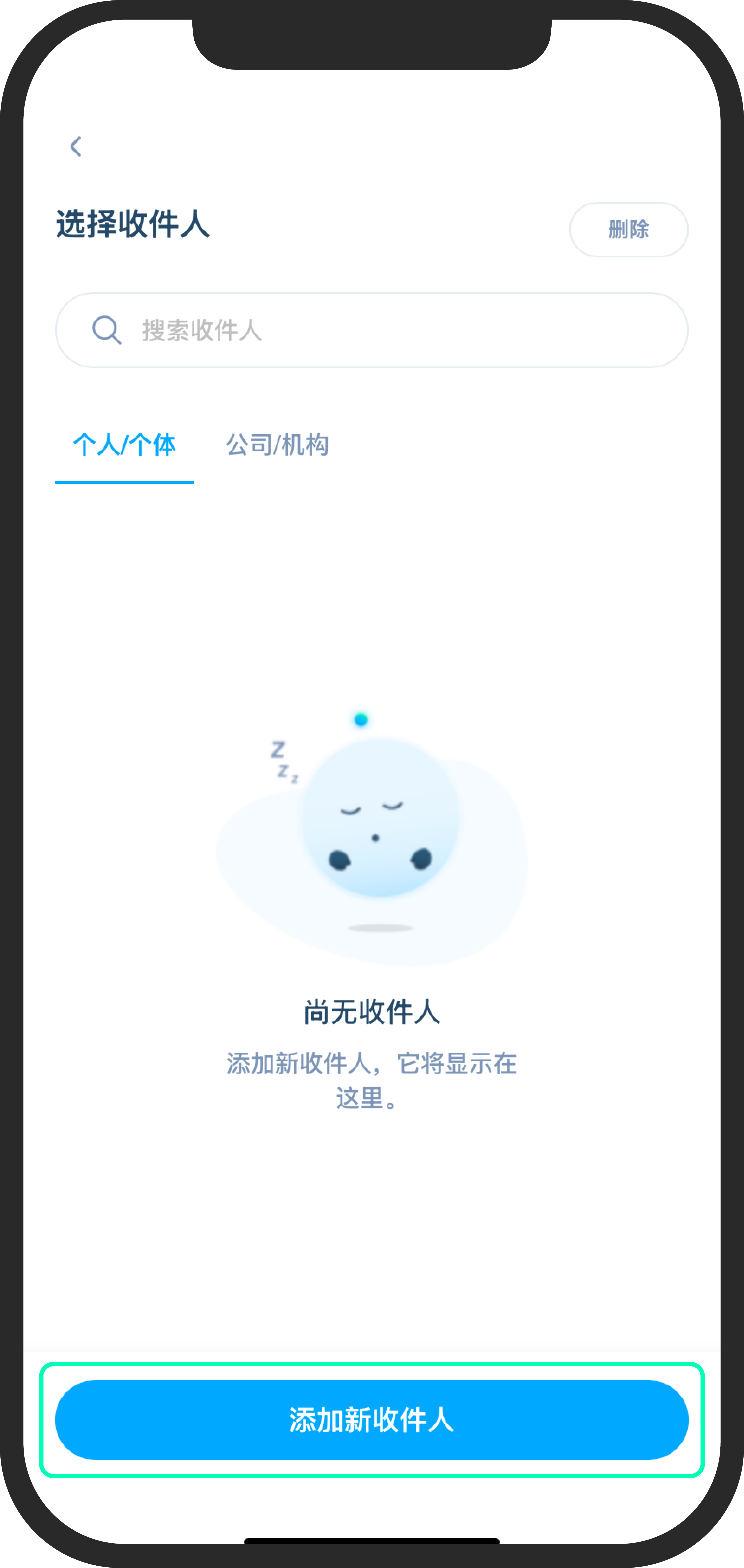- 点击“添加新收款人”,并正确填写收款人信息。您也可以从之前的交易中选择已保存的收款人信息。然后,点击“继续”