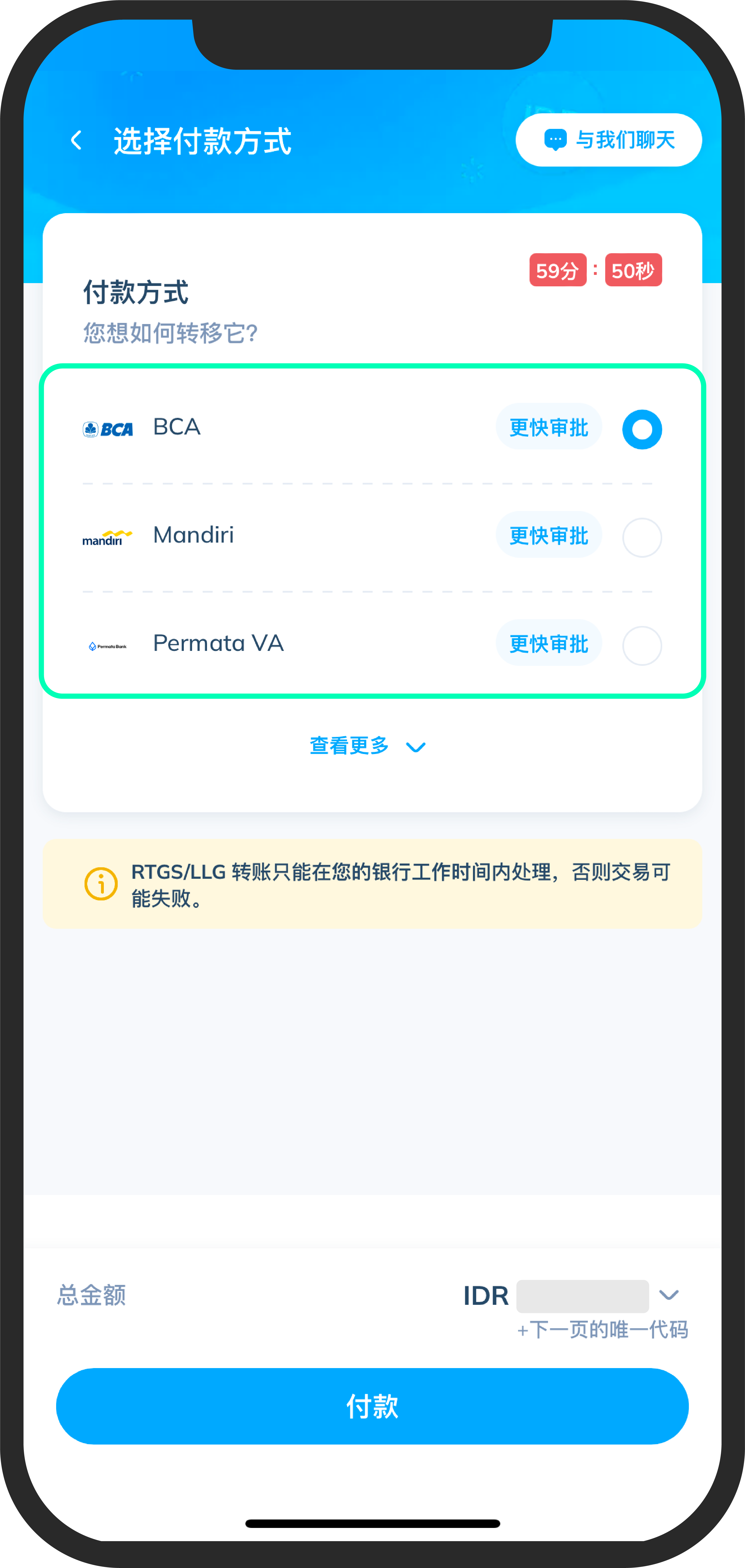 - 向Topremit 的其中一个银行账户付款(BCA/BNI/BRI/Mandiri/其他银行)